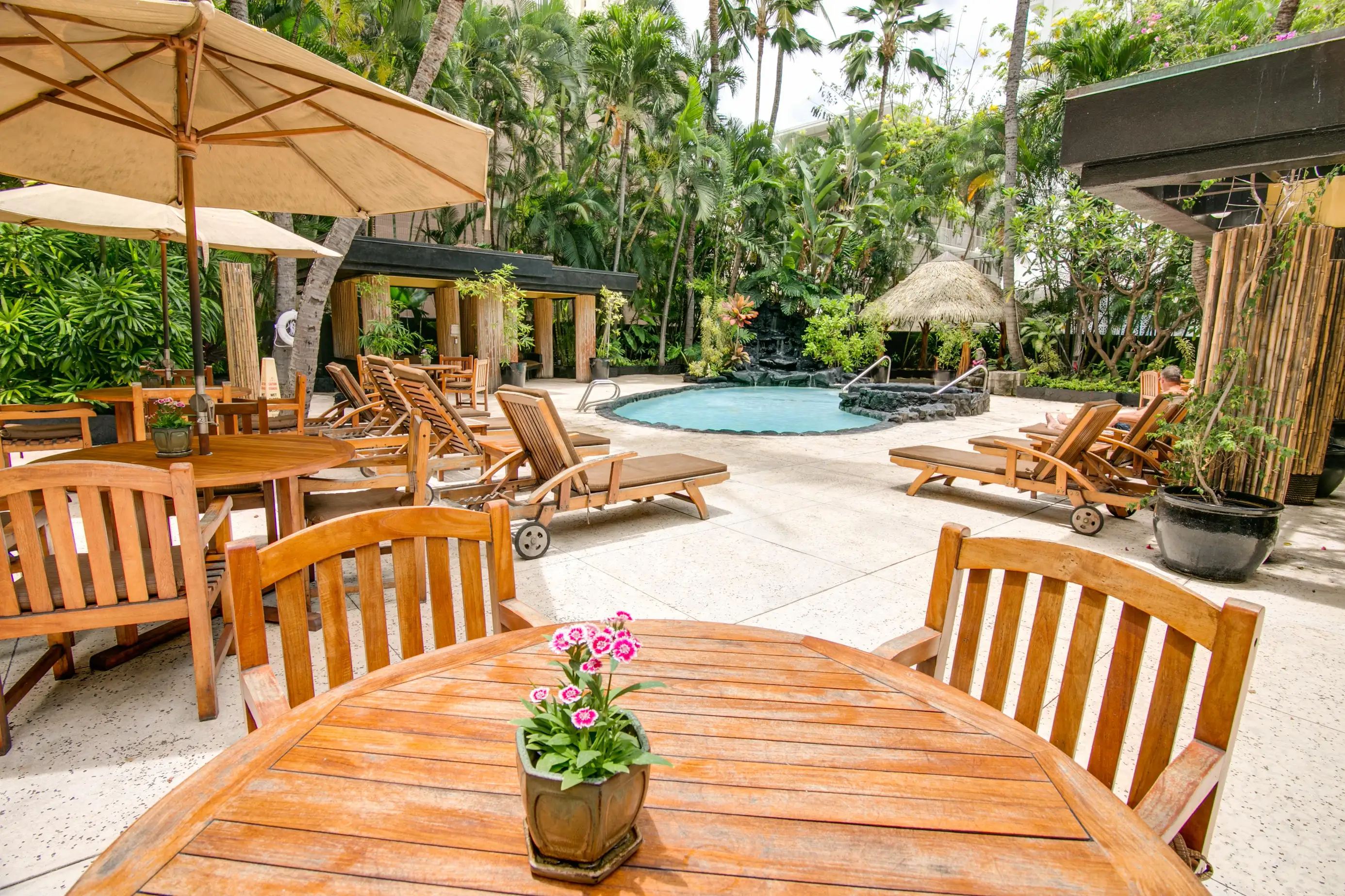 The updated pool area has a new bar/bistro and ample chairs and loungers for those days you decide not to tour the island or relax on Waikiki Beach just 3-4 mins from our property.